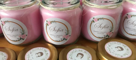 Todas nuestras opciones de velas para recordatorios tienen olor, puedes escoger el color, y personalizarlos 100%.